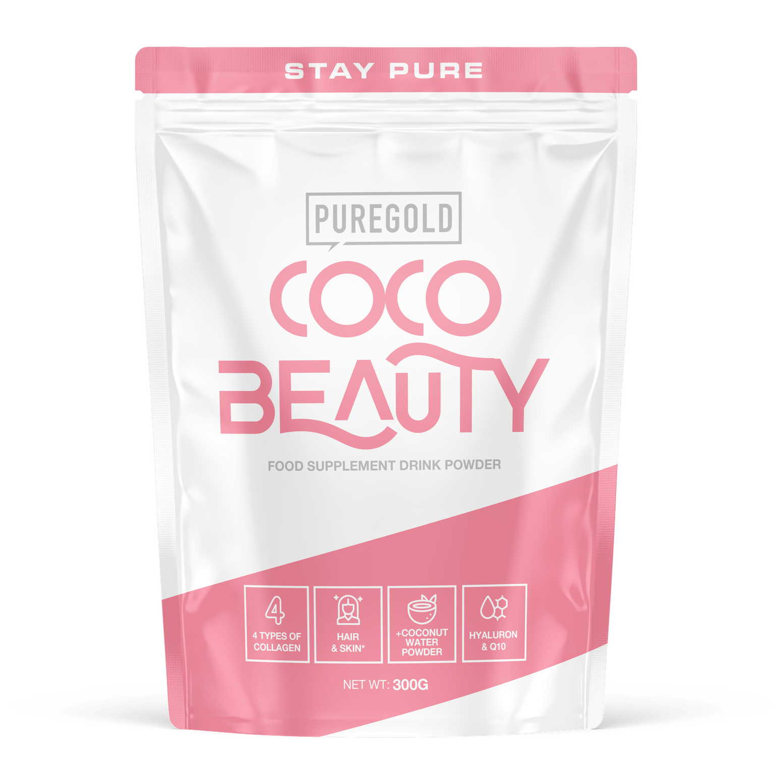 Pure Gold CocoBeauty este un supliment alimentar aromat și răcoritor, sub formă de pulbere pentru băutură, pe bază de colagen bovin și de pește, dezvoltat pentru cei pentru care este importantă o suplimentare adecvată cu colagen. Particularitatea produsului este adaosul de pulbere de apă de cocos, acid hialuronic, coenzima Q10, zinc, precum și vitaminele A și C, care, în mod dovedit științific, contribuie la funcționarea normală a pielii, părului, unghiilor și sistemului imunitar. Formula practică, sub formă de pulbere, a CocoBeauty se dizolvă rapid, astfel încât poate fi ușor încorporată în rutina zilnică.