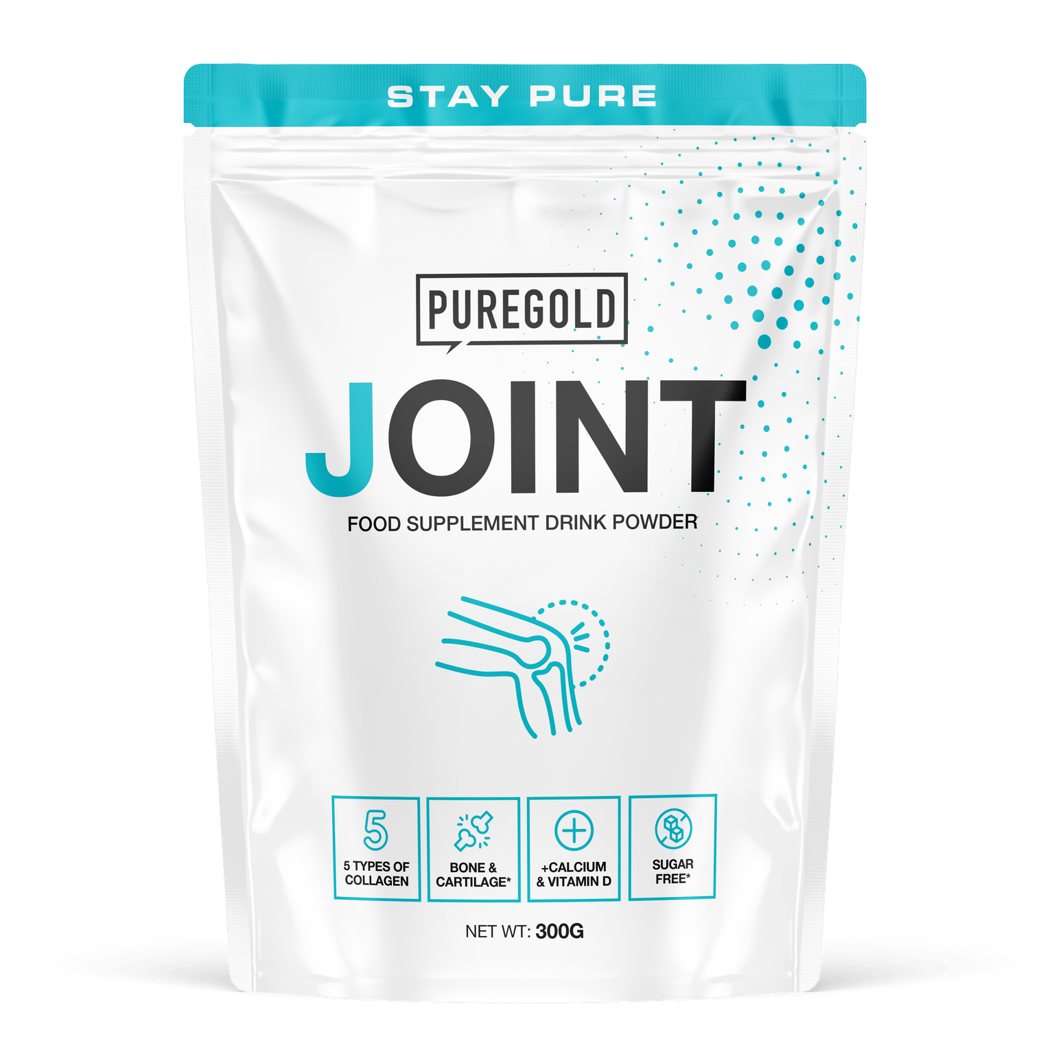 Pure Gold Joint Powder este un supliment alimentar sub formă de pulbere pentru băuturi, aromatizat, cu un gust senzațional, dezvoltat pentru cei care caută un sprijin țintit pentru funcționarea normală a articulațiilor, cartilajelor și sistemului osos. Produsul conține 5 tipuri de colagen, glucozamină, MSM, condroitină, vitamine, zinc, acid hialuronic și extracte din plante. Poate fi o alegere excelentă pentru toți cei care doresc să prevină sau să amelioreze problemele articulare, duc o viață activă sau pur și simplu vor să își susțină sănătatea aparatului locomotor.