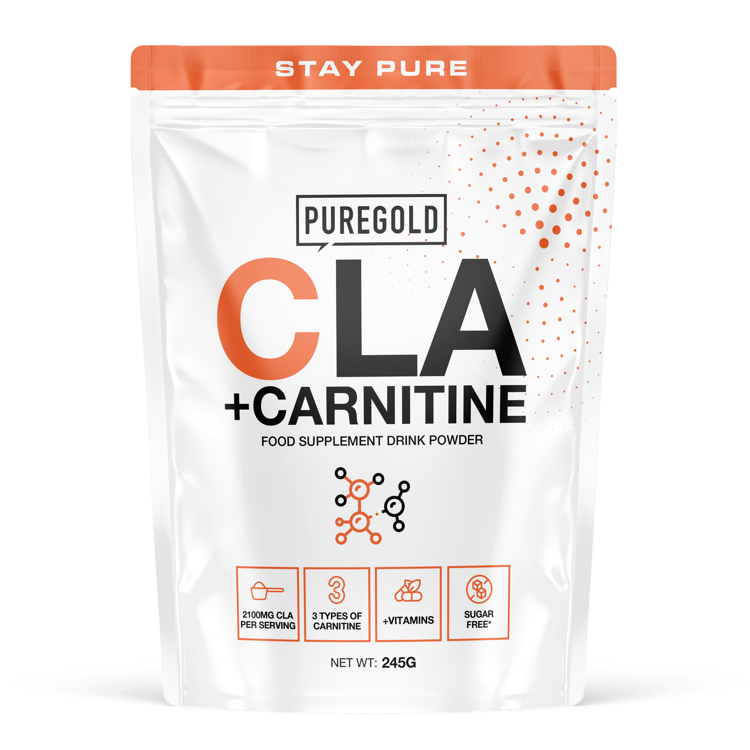 Ingrediente: Pulbere de acid linoleic conjugat [trigliceride cu acid linoleic conjugat (CLA) (din ulei de semințe de șofrănel), sirop de porumb solid, sodiu-cazeinat, agent antiaglomerant (dioxid de siliciu), stabilizator (fosfat dipotasic), antioxidanți (alfa-tocoferol, ascorbil palmitat)], L-carnitină L-tartrat, regulator de aciditate (acid citric anhidru), arome, acetil-L-carnitină clorhidrat, L-carnitină, agent antiaglomerant (dioxid de siliciu), îndulcitori (acesulfam K, sucraloză), coloranți (caroteni), bisglicinat de zinc, nicotinamidă, extract 50:1 din fructe de piper negru (Piper Nigrum), piridoxin clorhidrat, picolinat de crom.
